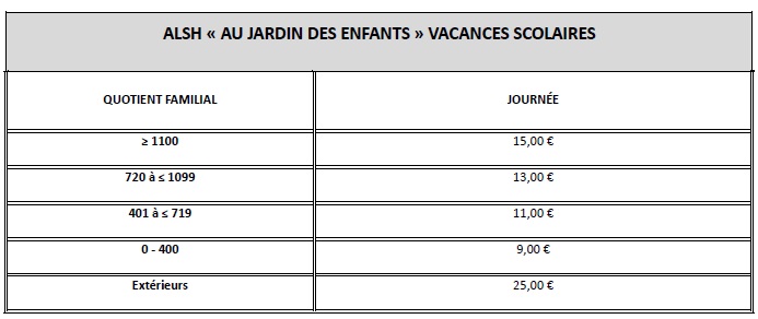 ►Les tarifs Accueil Collectif de Mineurs Vacances scolaires